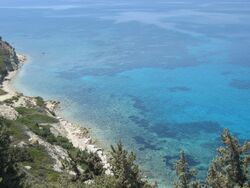 Preparations such as jam, ice cream and desserts, and even sauces for fish preparations, based on the distinctively flavored resin of the tree pistachia lentiscus from which it is harvested, are among nationally known culinary specialties of Çeşme. The adjacent Greek island of Chios (sakız in Turkish is the name for both Chios and mastic resin) is the source of mastic resin. Some efforts to produce mastic resin (in Greek mastiche, μαστίχη) in Çeşme, where climate conditions are similar, but they failed to produce the aromatic mastiche.[9] A number of efforts are being made to rehabilitate the potential presented by the mastic trees that presently grow in the wilderness, and to increase the number of cultivated trees, especially those planted by secondary-residence owners who grow them as a hobby activity. The fish is also abundant both in variety and quantity along Çeşme district's coastline.