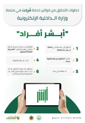- ^ "«السجون» تطلق الإصدار الثاني لخدمة «فُرجت» عبر «أبشر»". الجزيرة. 2020-05-18. Retrieved 2020-05-18.