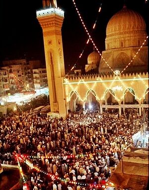 يعتبر الاحتفال بمولد البدوي [11] من أكبر الاحتفالات الدينية في مصر،[12] حيث يحتفل 67 طريقة صوفية.[13] ويقام في منتصف أكتوبر من كل عام بمدينة طنطا [14] الكائن فيها ضريحه بمسجده الشهير، ويقام لمدة أسبوع [15] وسط إجراءات أمنية مشددة.[16] ويتبعه الاحتفال بمولد إبراهيم الدسوقي بمدينة دسوق في الأسبوع الذي يلي الاحتفال بالبدوي مباشرةً. وقد ساعد إقامة مولد البدوي كل عام في ربط الشمال المصري بجنوبه، حيث أن كثير من أهل الصعيد لا يزورون الوجه البحري إلا في موعد إقامة مولد البدوي، وعندما ينتهي في طنطا يذهبون إلى دسوق للاحتفال بمولد الدسوقي.[17]