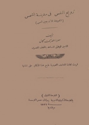 - ترويح النفس في مدينة الشمس والمعروفة الآن بعين شمس، تناول فيه تاريخ المدينة وأسماءها القديمة ومعابدها، ومعبوداتها وآثارها وأطلالها الحالية.