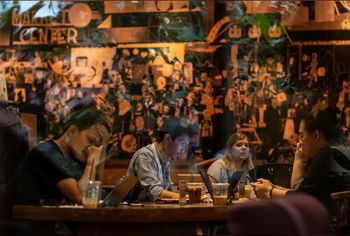 شباب يستخدمون اللاپتوپ في مقهى في جاكرتا، إندونيسيا، 31 يوليو 2019. رويترز.