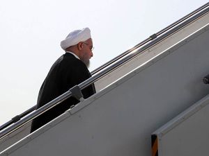 الرئيس الإيراني حسن روحاني يصعد الطائرة في طريقه لنيويورك لحضور جلسة الجمعية العامة للأمم المتحدة.