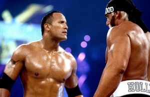 لاحقاً، انضم هوگان إلى بطولة العالم للمصارعة، مستبدلاً جواربه الصفراء المميزة بأخرى سوداء، ومتقمصاً شخصية الشرير "هوليوود" هوگن، زعيم عصابة من منتهكي القواعد تُعرف باسم "النظام العالمي الجديد". أعادت هذه الحيلة تنشيط مسيرته المهنية. عاد هوگن في النهاية إلى الاتحاد العالمي للمصارعة، المعروف الآن باسم دبليو دبليو إي، وواجه دوين جونسون "الصخرة" عام 2002. صرح هوگن لرويترز آنذاك، قبل خمسة أشهر من عيد ميلاده الخمسين: "أنا في لياقة بدنية أفضل منه. سأقف بجانب الصخرة وأجلس معه إن أراد". فاز الصخرة بالمباراة في النهاية.