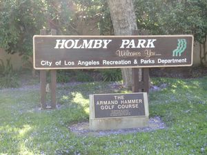 Sign of the Armand Hammer Golf Course in Holmby Park in Holmby Hills, Los Angeles