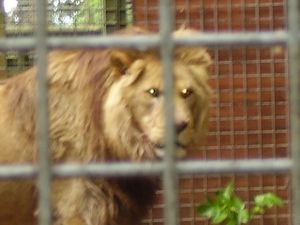 أسد يحتمل أنه بربري في حديقة الحيوانات
