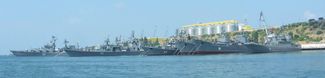 - خلال حرب أوسيتيا الجنوبية 2008، أمرت البحرية الأوكرانية بمنع دخول السفن الروسية المشاركة في الأعمال العدائية إلى سڤاستوپول.[58]ومع ذلك، عادت سفن البحرية الروسية إلى قاعدتها دون عوائق من قبل البحارة الأوكرانيين المتعاطفين.