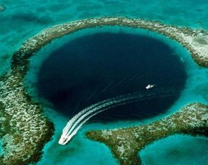 العديد من الكهوف البحرية "مشهورة في أوساط المجتمع المائية -- إلى حد كبير إذا كان لديك زوج من الزعانف وإسطوانة من الهواء لاستكشاف المعالم السياحية مثل Belize's Great Blue Hole فجوة بليز الزرقاء العظيمة