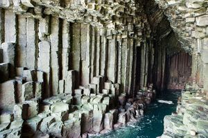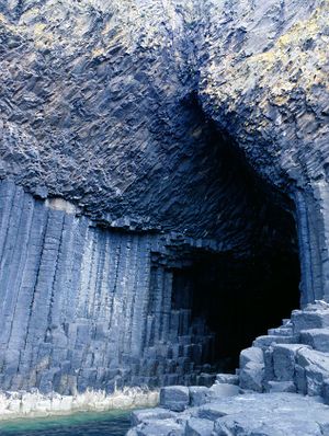 كهف فنگال، ويقع على جزيرة غير مأهولة في ستافا في اسكتلندا ، ويعرض نمطا من الجغرافيا البكر فريدة من نوعها ، -- وتروج الأقاويل حول كونه مقرا للعملاق الذي بنى الجسر بين اسكتلندا وايرلندا.