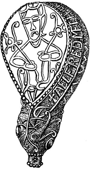 The Alfred Jewel, in the Ashmolean Museum, Oxford, commissioned by Alfred.