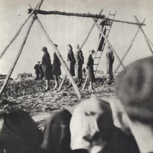 The SA leadership continued to apply pressure for greater political and military power. In response, Hitler used the Schutzstaffel (SS) and Gestapo to purge the entire SA leadership.[37] Hitler targeted SA Stabschef (Chief of Staff) Ernst Röhm and other SA leaders who—along with a number of Hitler's political adversaries (such as Gregor Strasser and former chancellor Kurt von Schleicher)—were arrested and shot.[38] Up to 200 people were killed from 30 June to 2 July 1934 in an event that became known as the Night of the Long Knives.[39]
