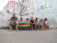 أنتوني بوردين مع أطفال في غزة، 2014