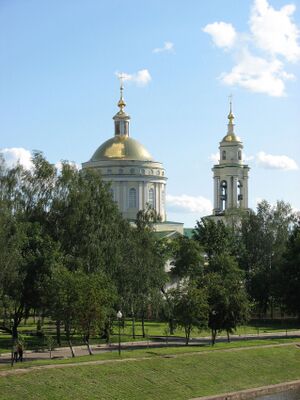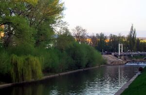 In central Oryol, streets fan out from the fortress; two main axes are the Upper and Lower Korchak Roads. Opposite the fortress was probably a second marketplace in the Zaotsk section, where the dragoon settlements had a relatively-regular layout along the river. Away from the river, the grid becomes a fan. The city – its fortress, three marketplaces, two monasteries and a number of parish churches – was developed from the river. Its structure was visible from the Oka: the central fortress, the fan-shaped center and the grid of the Zaotsk settlements. The city was connected by bridges, making Oryol a military fortress and a trade center.[10]