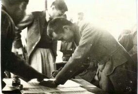 Aung San in Japan (right), with Bo Let Ya (Thakin Hla Pe) (left) and Bo Sekkya (Thakin Aung Than) (middle) |