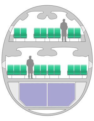 Economy class fuselage-comparison between Airbus A380 and the front-section of Boeing 747, the next-largest passenger aircraft