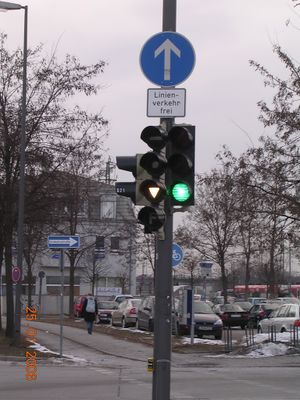 Traffic light in Munich, ألمانيا, showing a special bus signal.