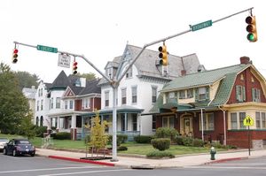 Traffic light on a small intersection in مريلاند, الولايات المتحدة