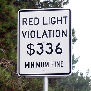 Attempt to discourage red light running by posting the minimum fine, which has increased by $1.09 since this photo was taken.