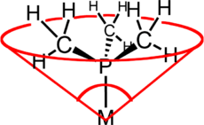 Ligand cone angles are measures of the size of ligands in coordination chemistry. It is defined as the solid angle formed with the metal at the vertex and the hydrogen atoms at the perimeter of the cone (see figure).[9]