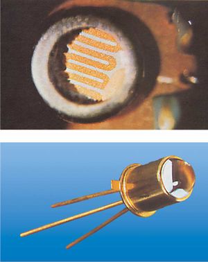 1ـ المقاومات الضوئية photo resistors: هي وسيلة إلكترونية غير فعالة مركبة من مادة نصف ناقلة من كبريت الكادميوم cadmium sulfide (CdS) المعرضة للضوء حيث تتناقص المقاومة الكهربائية لهذه المادة مع تزايد الشدة الضوئية الساقطة عليها. تُغلف المادة نصف الناقلة بمادة شفافة مُحكمة الأغلاق، وذلك لتجنب التغير في قيمة المقاومة نتيجة الرطوبة المحيطة بها.