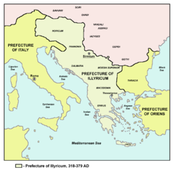 مقاطعة إليريا في 375-379 (بالأخضر الفاتح).