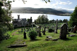Blackwell's headstone is the tall, white cross at the bottom of the hill.