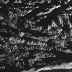 Figure 9: High-resolution mosaic of Enceladus's surface, showing several tectonic and crater degradation styles. Taken by Cassini on 9 March 2005.