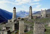 Typical Ingush medieval castle. Majority of towers and walls were destroyed by Russian army in 19th and 20th centuries.