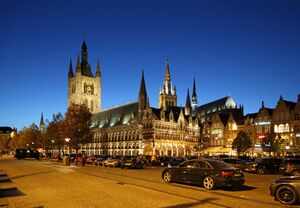 As the third largest city in the County of Flanders (after Ghent and Bruges), Ypres played an important role in the history of the textile industry.[2] Textiles from Ypres could be found in the markets of Novgorod in Kievan Rus' in the early 12th century. In 1241, a major fire ruined much of the old city. The powerful city was involved in important treaties and battles, including the Battle of the Golden Spurs, the Battle at Mons-en-Pévèle, the Peace of Melun, and the Battle of Cassel.
