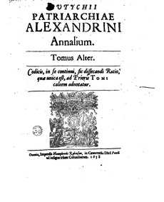 - ^ Eutychius (Patriarch of Alexandria) (1863). J.P. Migne (ed.). Eutychii Annales - Epistolai, Volume 111 of Patrologiæ cursus completus: Series Græca. Vol. 111. PmJ7zGaz9D4C.