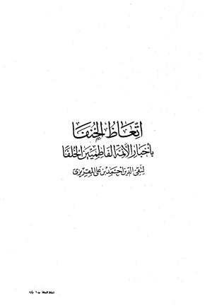 اتعاظ الحنفا بأخبار الأئمة الفاطميين كتاب من تأليف أبو العباس تقي الدين أحمد بن علي ابن عبد القادر بن محمد العبيدي المقريزي مؤرخ مصري اشتهر بالمقريزي اتعاظ الحنفا بأخبار الأئمة الفاطميين الخلفا