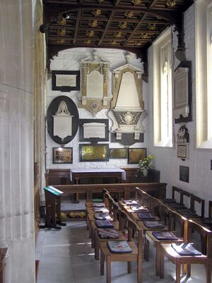 The Australia Chapel in St Nicholas Church, Bathampton, near Bath, England. The memorial to the first governor of New South Wales, Arthur Phillip, is on the right hand wall