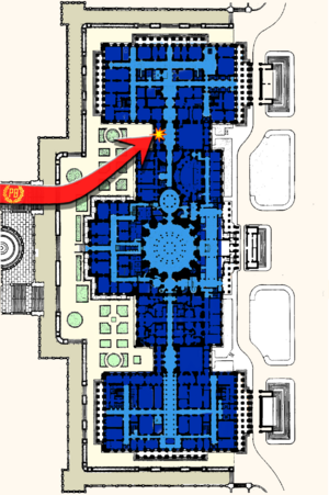 A map of the Capitol complex and its underground tunnels was posted to TheDonald.win on December 28, 2020, and widely shared.[137] The image came to the attention of the Norfolk field office of the FBI, which alerted higher authorities to the possibility of organized violence on January 6.[138][139] In 2023, Congress would discuss the image in its report "Planned in Plain Sight" about the failures to adequately prepare for the attack despite extensive predictions of violence.[139]