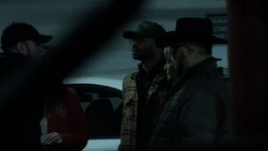 Enrique Tarrio (center) and Stewart Rhodes (far right) participated in a January 5 meeting between the leaders of the Oath Keepers and Proud Boys, held in an underground parking garage.