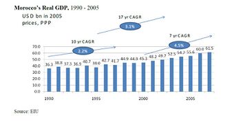 - ^ أ ب "Economic development – Morocco – product, growth, area, annual, economic growth, infrastructure, policy, sector". Retrieved 11 June 2015.