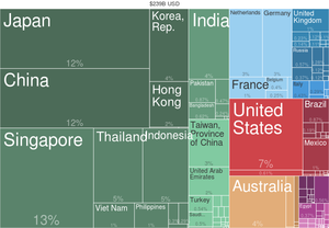 السلع التصديرية | أشباه الموصلات والإلكترونيات، زيت النخيل، الغاز الطبيعي المسال، النفط، الكيماويات، المكيكنة، المركبات، الأجهزة البصرية والعلمية، تصنيع المعادن، المطاط، الخشب والمنتجات الخشبية |