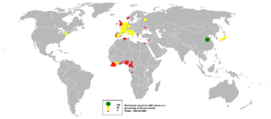 الصين 41.6%, فرنسا 10.4%, إسبانيا 7.1%, ايطاليا 7%, هولندا 5.4%, بلجيكا 4.7% (2008)