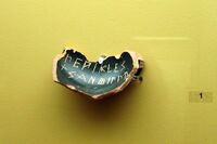 Some local scripts used the M-shaped letter San instead of standard Sigma to denote the sound /s/. It is unclear whether the distinction between the two letters originally corresponded to different phonetic realizations of the /s/ phoneme in different dialects. Epigrapher Lilian Hamilton Jeffery (1915–1986) conjectured that San originally stood for a voiced [z] sound, and that those Doric dialects that kept San instead of Sigma may have had such a pronunciation of /s/.[11] Roger Woodard, professor of classics at the University at Buffalo, hypothesizes that San may originally have stood for [ts].[12] In any case, each dialect tended to use either San or Sigma to the exclusion of the other, and while the earliest abecedaria listed both letter shapes separately in their separate alphabetic positions, later specimens from the sixth century onwards tend to list only one of them. San was used in Argos until the end of the 6th century,[13] in Sicyon until c. 500,[14] in Corinth until the first half of the 5th century,[13] and in Crete for some time longer. Sicyon kept the sign as a local emblem on its coins.