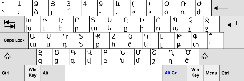 شكل لوحة المفاتيح للأرمنية الشرقية.