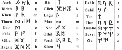 35. ^ Ralph Warren, Victor Elliott, Runes: an introduction, Manchester University Press ND, 1980, 51-53.