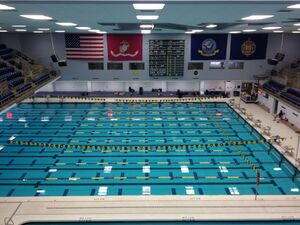 الأكاديمية البحرية للولايات المتحدة ( United States Naval Academy؛ US Naval Academy، USNA أو Navy) هي federal service academy in Annapolis, Maryland. It was established on 10 October 1845 during the tenure of George Bancroft as Secretary of the Navy. The Naval Academy is the second oldest of the five U.S. service academies and it educates midshipmen for service in the officer corps of the United States Navy and United States Marine Corps. The 338-acre (137 ha) campus is located on the former grounds of Fort Severn at the confluence of the Severn River and Chesapeake Bay in Anne Arundel County, 33 ميل (53 km) east of Washington, D.C., and 26 ميل (42 km) southeast of Baltimore. The entire campus, known colloquially as the Yard, is a National Historic Landmark and home to many historic sites, buildings, and monuments. It replaced Philadelphia Naval Asylum في فيلادلفيا that had served as the first United States Naval Academy from 1838 to 1845 when the Naval Academy formed in Annapolis.[4]