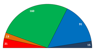 آخر انتخابات 102 seats, 38.1% 152 seats, 41.8% 22 seats, 8.2%