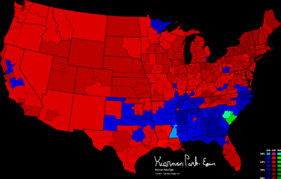 Eisenhower slightly improved on his 1952 majorities in both the popular and electoral vote. He increased his 1952 gains among Democrats, especially Northern and Midwestern white ethnic groups and city-dwelling and suburban White Southerners.[5] Surprisingly, Eisenhower narrowly lost Missouri, a bellwether state for most of the 20th century, and which had voted for him in 1952; at the same time he carried Kentucky, Louisiana, and West Virginia, which had voted against him in the previous election. Eisenhower was the first Republican presidential candidate to win Louisiana, and by extension any Deep South state, since 1876.