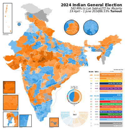 - ^ "Largest electorate for General Elections - over 96.88 crore electors registered across the country". Archived from the original on 3 May 2024. Retrieved 4 June 2024.