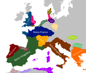Europe ح. 500 AD, in the midst of the schism (in برتغالية). Western Europe was loyal to the Bishop of Rome (then Pope Symmachus).
