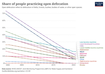 - ^ "Share of people practicing open defecation". Our World in Data. 6 January 2024. Archived from the original on 17 August 2024. Retrieved 2024-08-16.