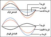 يحدث التداخل حين تمر في فراغ واحد موجتان من نوع واحد وفي وقت واحد. وفي التداخل البناء، تلتقي الموجتان أ ، ب لتشكلا موجة مدعمة. أما في التداخل الهدام، فيؤدِّي الاختلاف بين الموجتين أ ، ب إلى تشكيل موجة مخفضة.