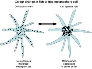 Chromatophores are special pigment-containing cells that can change their size, thus varying the colour and pattern of the animal. The voluntary control of chromatophores is known as metachrosis.[3] For example, cuttlefish and chameleons can rapidly change their appearance, both for camouflage and for signalling, as Aristotle first noted over 2000 years ago:[4]