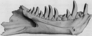 Skeletal restoration by William D. Matthew from 1905, the first reconstruction of this dinosaur ever published[58]