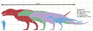 28. ^ J. R. Horner، K. Padian (2004). "Age and growth dynamics of Tyrannosaurus rex". Proceedings. Biological sciences / the Royal Society. 271 (1551): 1875–80. doi:10.1098/rspb.2004.2829. PMC 1691809. PMID 15347508. Retrieved 2008-10-05. {{cite journal}}: Unknown parameter |month= ignored (help)
