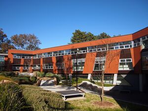 The ANU College of Law covers legal research and teaching, with centres dedicated to commercial law, international law, public law and environmental law.[76] In addition to numerous research programs, the college offers the professional LL.B. and J.D. degrees. It is the 7th oldest[77] of Australia's 36 law schools and was ranked 2nd among Australian and 12th among world law schools by the 2018 QS Rankings.[78] Students are given the chance to spend three weeks in Geneva concerning the institutional practice of International Law.[79]